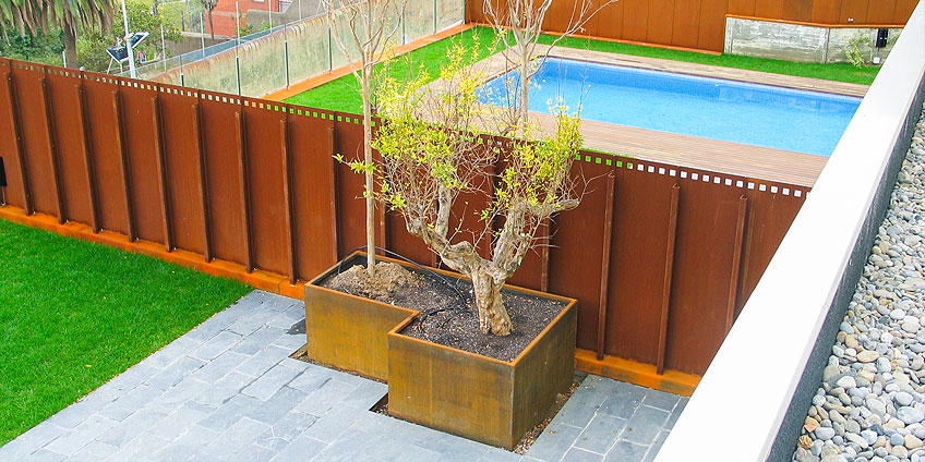 Transformación de chapa corten para la realización y/o decoración de jardines, vallas, fachadas,… según necesidades de la obra o necesidades del cliente, combinando la protección y el diseño.