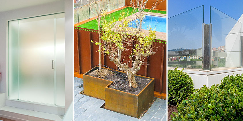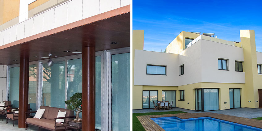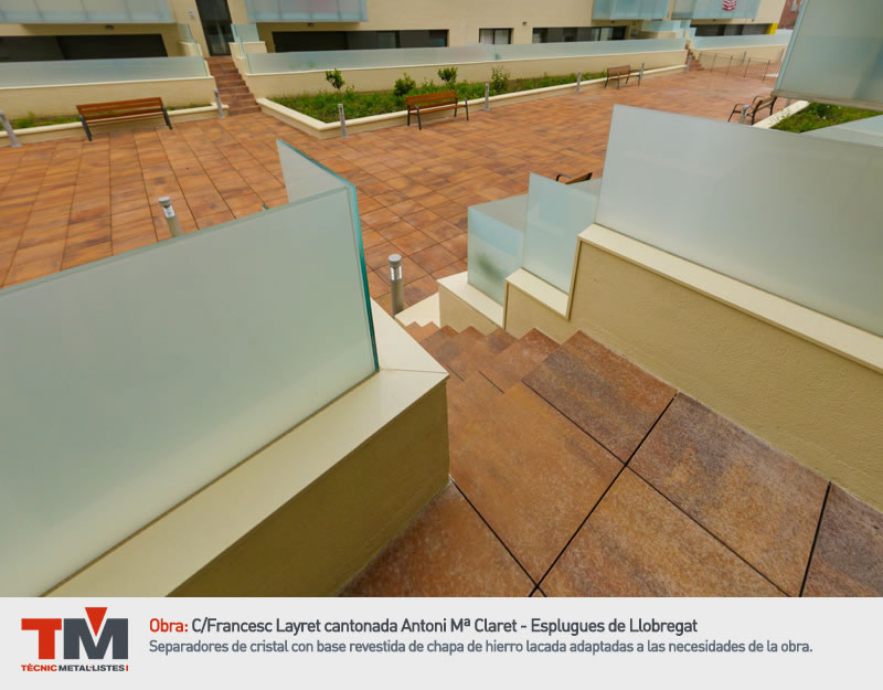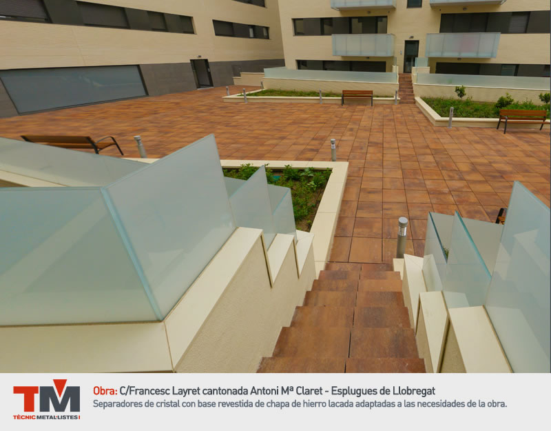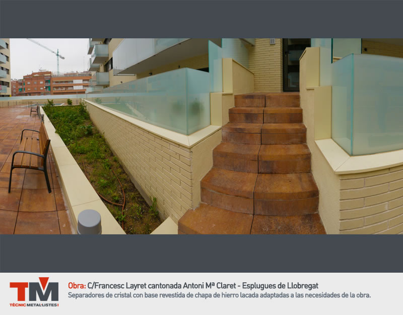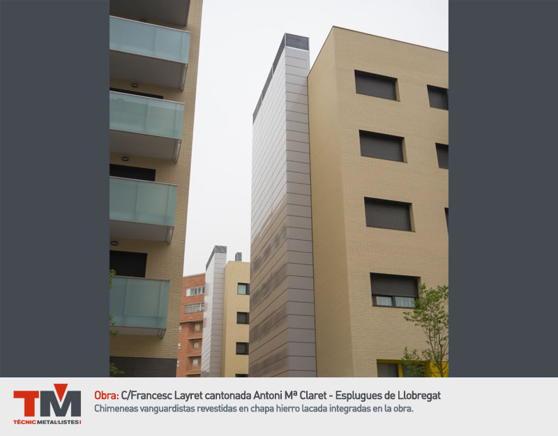 Trabajos: Construcción, suministro y montaje de soluciones para su fachada en cristal, aluminio, acero y chapa. Barandas de acero inoxidable y cristal laminado. Chimeneas vanguardistas revestidas en chapa de hierro lacada integrada en la obra. Separadores de seguridad para patios interiores de cristal laminado con base revestida de chapa de hierro lacado. Revestimiento de chapa de hierro lacado entre ventanas